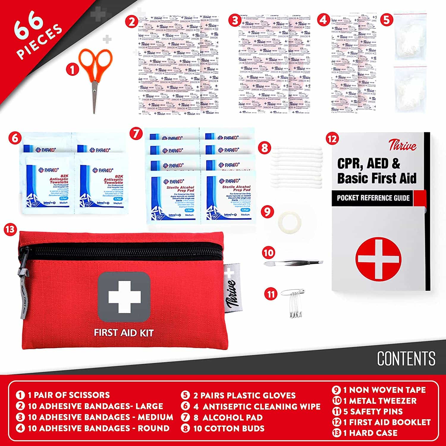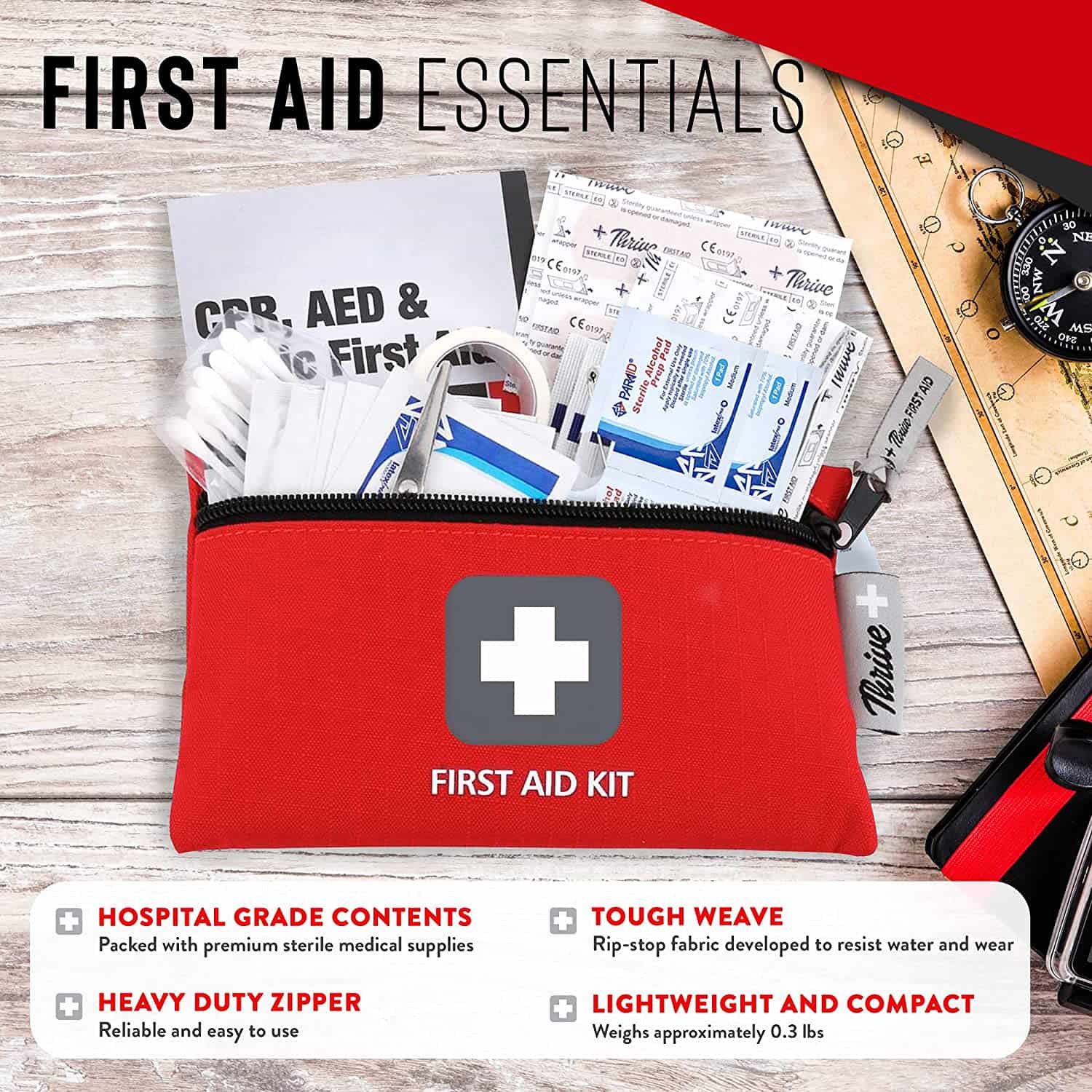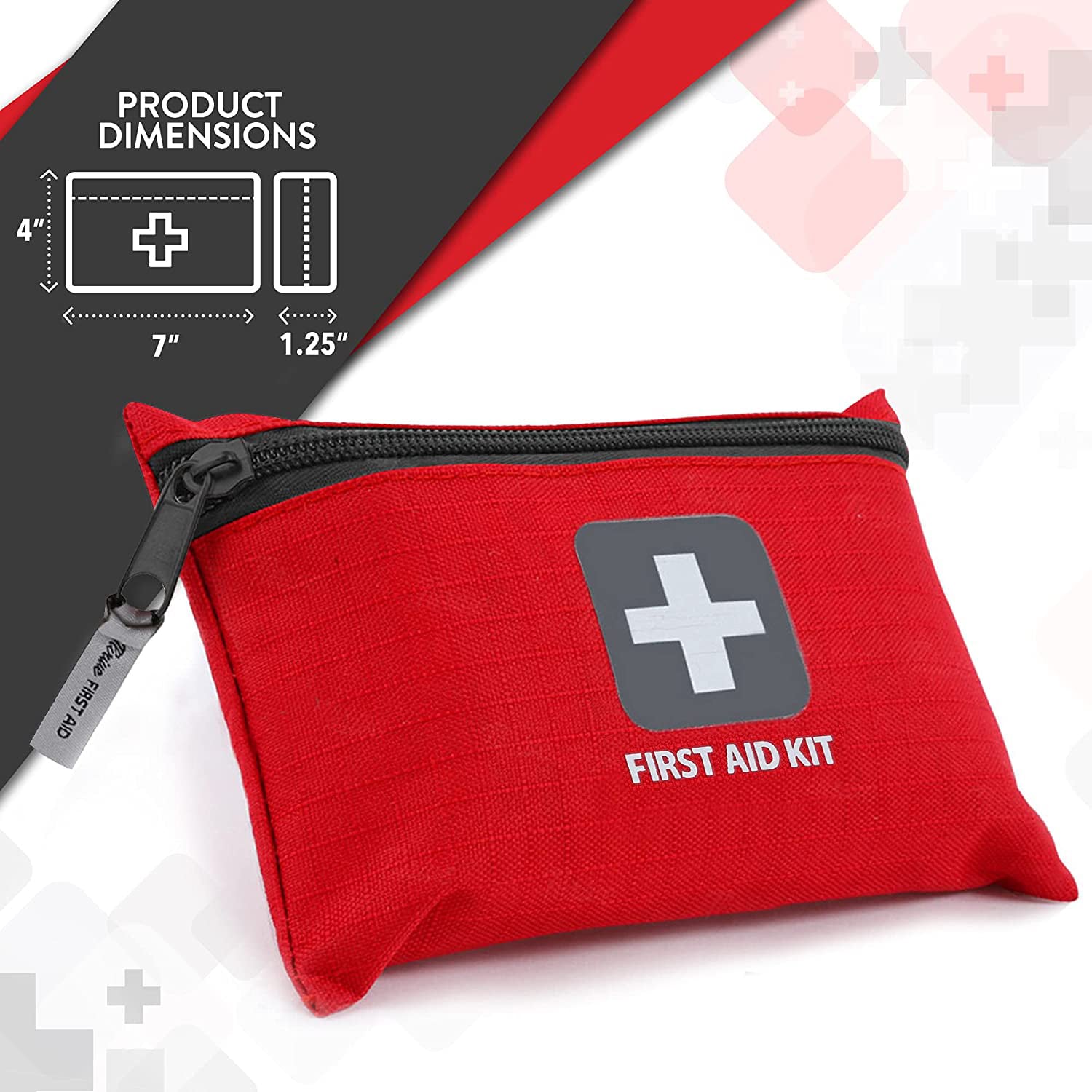Mapangidwe – Amabwera mu chikwama cha nayiloni chofiira cha 600D polyester. Zopepuka, zophatikizika koma zimakhalabe ndi chilichonse chomwe mungafune pazochitika zosayembekezereka pamoyo. Zimakwanira bwino mu thumba lachikwama, thumba la diaper, fanny paketi. Chothandizira choyamba ichi ndi mainchesi 7.0 kutalika X 4.0 mainchesi m'lifupi X 2.0 mainchesi kuchindikala. Imalemera pafupifupi 0.3 lbs. Chida chothandizira choyamba ichi ndi chopepuka, chaching'ono komanso cholimba.